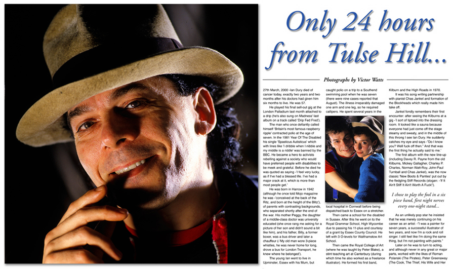 March, 2000 -Ian Dury died of cancer, exactly two years and two months