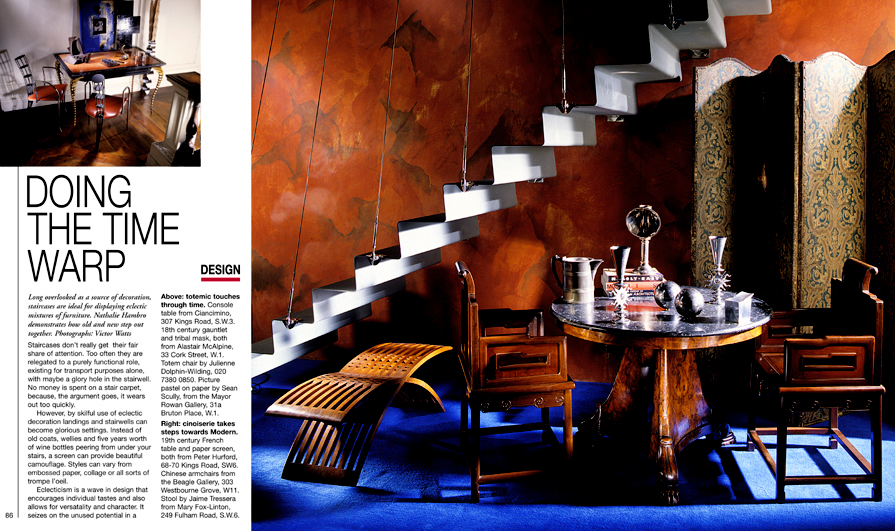 Mixing of old and new furniture in old and modern settings article for The Sunday Times